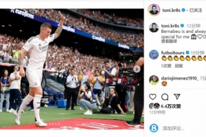 克罗斯在社交媒体上晒出登场时的照片,并配文:“伯纳乌对我来说是特别的,永远如此。”