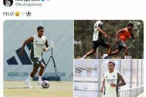 皇马正在备战世俱杯,因伤错过赛季最后几场比赛的罗德里戈随队训练,他在社媒晒出训练照,并配文:快乐。