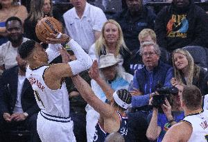 上赛季西蒙斯在快船场均2.9分3.8篮板3.1助攻,威少在掘金场均13.3分4.9篮板6.1助攻1.4抢断。