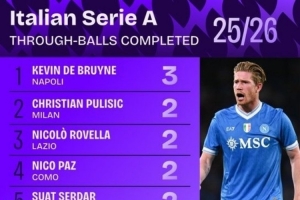 体育资讯9月26日讯 数据网站Squawka统计,自2018/19赛季以来,在欧洲五大联赛效力时期,只有梅西和B费完成的直塞球次数比德布劳内更多。