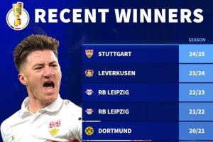 德转列近10年德国杯冠军: